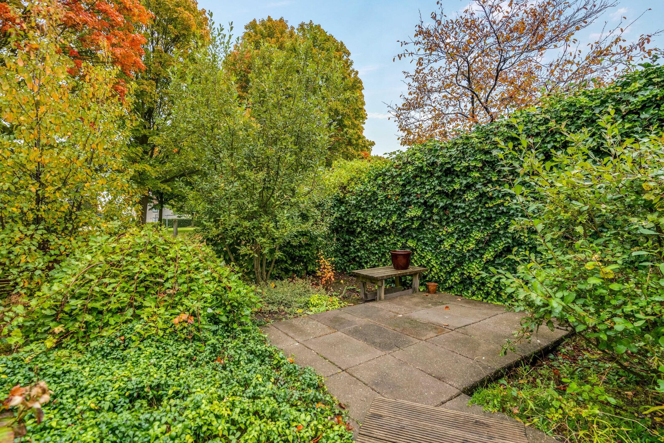 In de zonnige, 14 meter diepe achtertuin kunt u tot in de late uurtjes genieten van zon, rust en privacy. Kinderen kunnen veilig spelen in het aangrenzende openbaar groen en op het nabijgelegen speelveld.