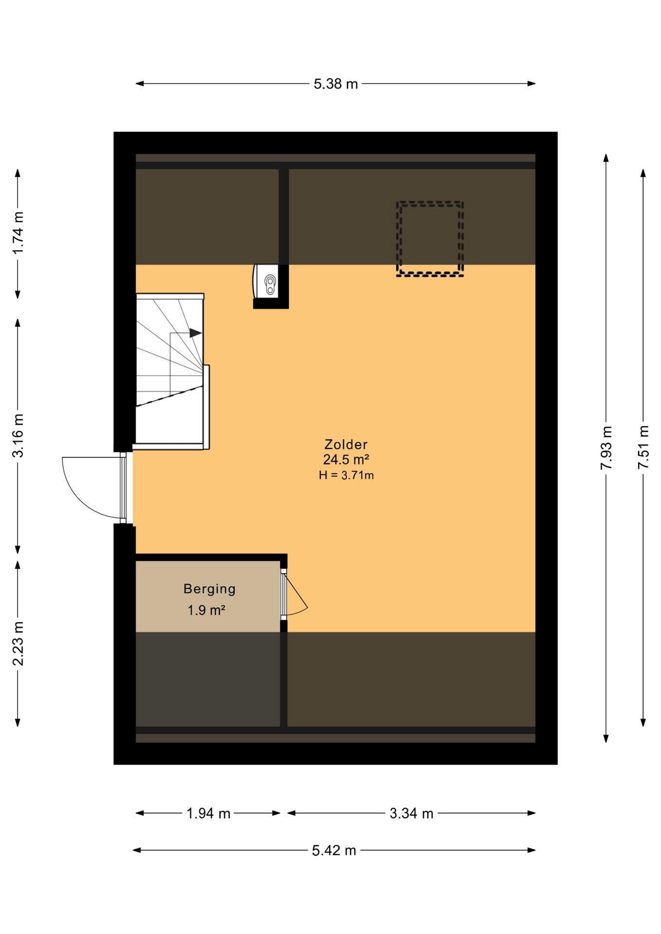 Royale zolderverdieping met volop mogelijkheden voor het creëren van eventueel één of twee extra slaapkamers